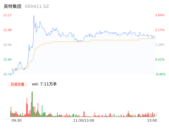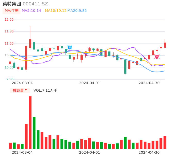 04月30日,英特集团收报11.03,股价涨幅1.75%,成交金额7830.19万元,换手率2.22%。