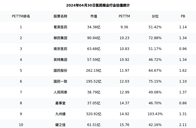 英特集团最新报告期数据为一季度,下表汇总了医药商业行业内市值靠前的公司一季度主要经营数据