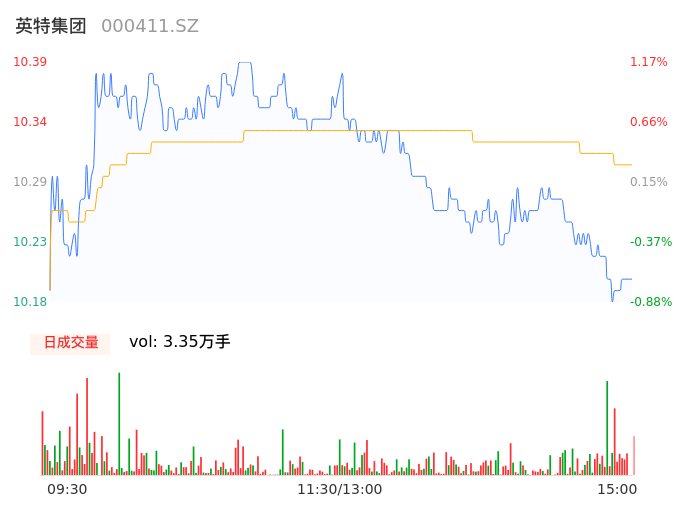 04月18日,英特集团收报10.21,股价涨幅-0.58%,成交金额3518.82万元,换手率1.07%。