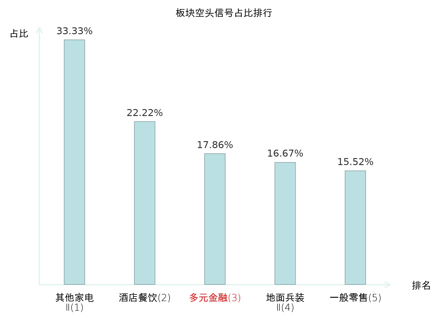 全市场所有行业板块中主力空头信号占比排名中,其他家电Ⅱ板块位居第一。广告营销板块名次提升最快,较昨日上升111位。