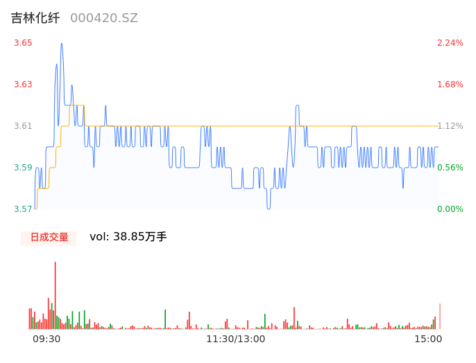 05月14日,吉林化纤收报3.60,股价涨幅0.84%,成交金额1.40亿元,换手率1.58%。