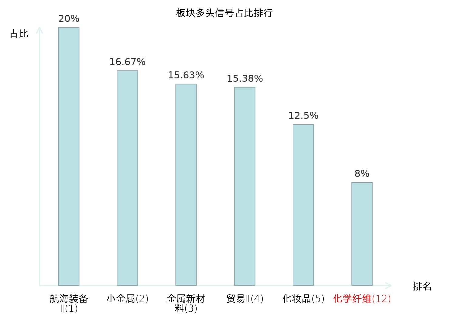 全市场所有行业板块中主力多头信号占比排名中,航海装备Ⅱ板块位居第一。航海装备Ⅱ板块名次提升最快,较昨日上升115位。