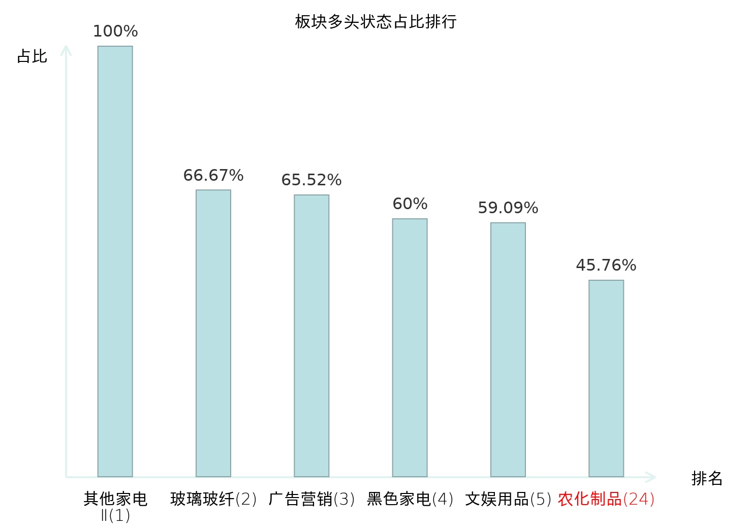 从主力宝信号数据分析,湖北宜化所属的农化制品板块中共有27只股票处于主力多头状态,主力多头状态占比在全行业中排名第24位,较昨日上升1位。排名的提升反映了主力对农化制品板块整体看多意愿的增强。全市场所有行业板块中,其他家电Ⅱ板块的主力多头状态占比最高,位居第一;体育Ⅱ板块名次提升最快,较昨日上升57位。这些变动揭示了不同行业间主力资金偏好的变化,为投资者提供了有关市场动态和潜在投资机会的重要参考。
