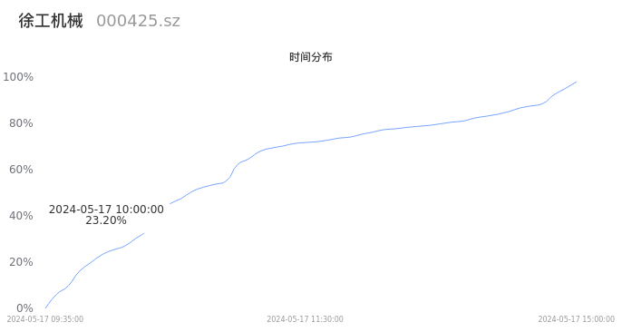 000425徐工机械2024年05月17日成交98.16万手,成交金额7.62亿元,相较昨日放量8.87万手,换手率1.21%,成交清淡。