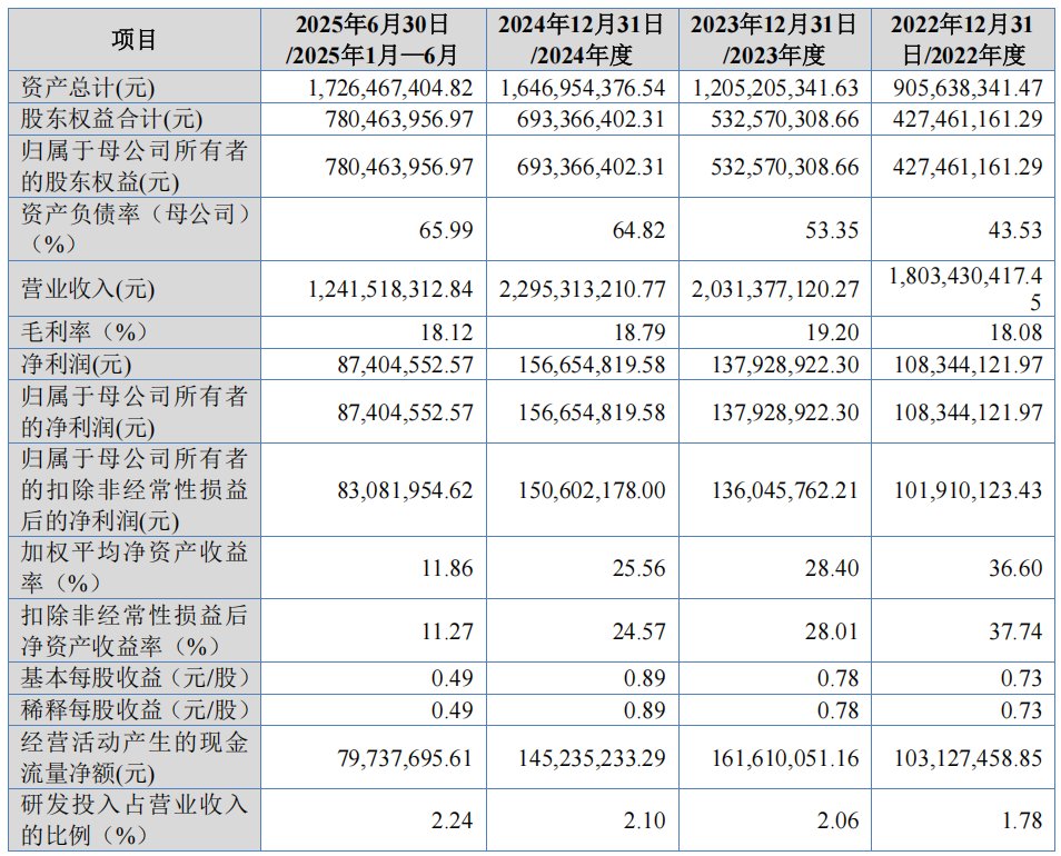 财务方面,于2022年度、2023年度、2024年度,2025年1月-6月,泰凯英实现营业收入分别约为18.03亿元、20.31亿元、22.95亿元、12.42亿元人民币;同期,该公司实现净利润分别约为1.08亿元、1.38亿元、1.57亿元、8740.46万元人民币。