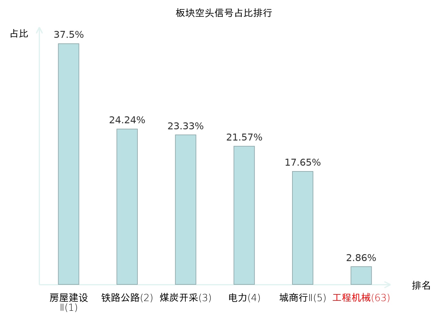 全市场所有行业板块中主力空头信号占比排名中,房屋建设Ⅱ板块位居第一。煤炭开采板块名次提升最快,较昨日上升117位。