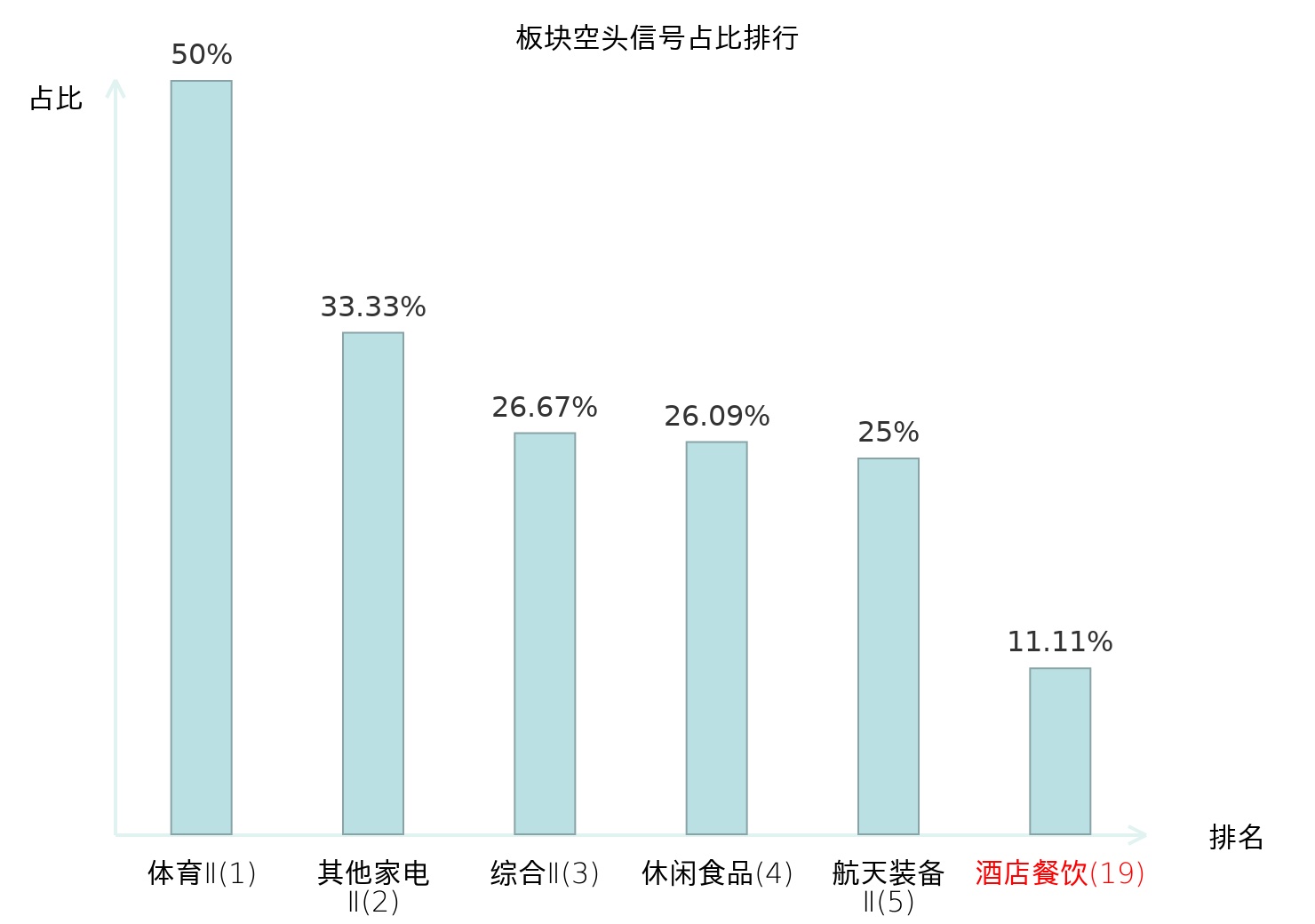 全市场所有行业板块中主力空头信号占比排名中,体育Ⅱ板块位居第一。综合Ⅱ板块名次提升最快,较昨日上升113位。