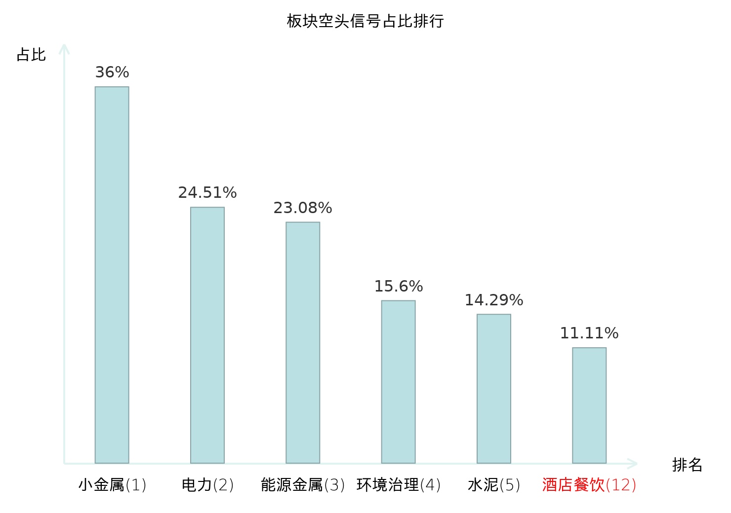 全市场所有行业板块中主力空头信号占比排名中,小金属板块位居第一。计算机设备板块名次提升最快,较昨日上升113位。
