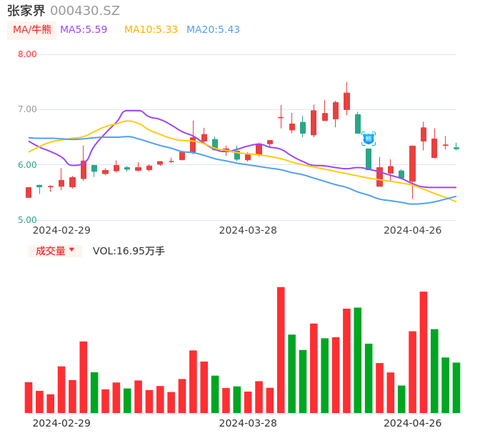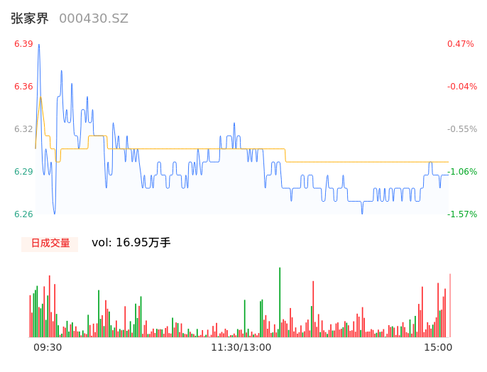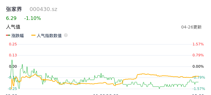 04月26日,张家界收报6.29,股价涨幅-1.10%,成交金额1.07亿元,换手率5.11%。
