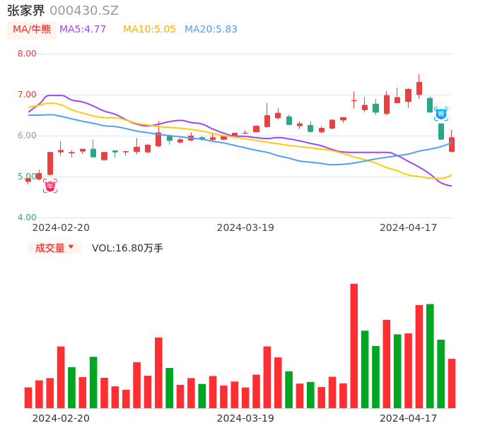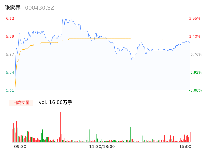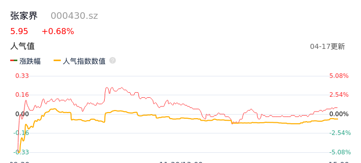 04月17日,张家界收报5.95,股价涨幅0.68%,成交金额1.00亿元,换手率5.06%。