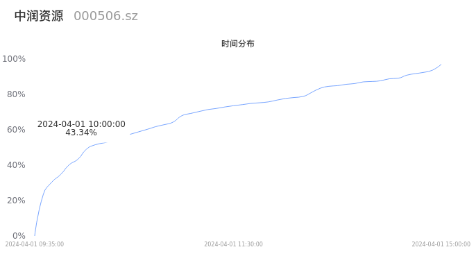 000506中润资源2024年04月01日成交93.17万手,成交金额3.90亿元,相较昨日缩量34.45万手,换手率10.03%,成交活跃。