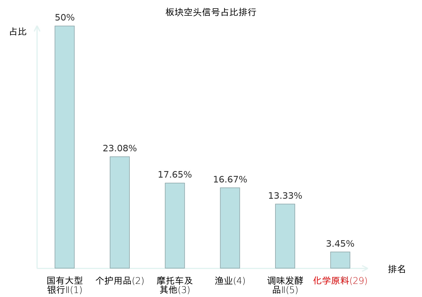 从主力宝信号数据分析,新金路所属的化学原料板块中共2只股票发出主力空头信号,主力空头信号占比在全行业中排名第29位,较昨日下降10位。排名越高说明主力当日卖出意愿越强。全市场所有行业板块中主力空头信号占比排名中,国有大型银行Ⅱ板块位居第一;食品加工板块名次提升最快,较昨日上升109位。这些变动揭示了不同行业间主力资金动向的趋势,为投资者提供了关于市场情绪和潜在风险的重要线索。