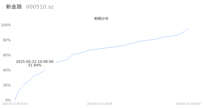 000510新金路2025年05月22日成交110.03万手,成交金额5.53亿,相较昨日缩量38.06万手,换手率18.14%,成交活跃。