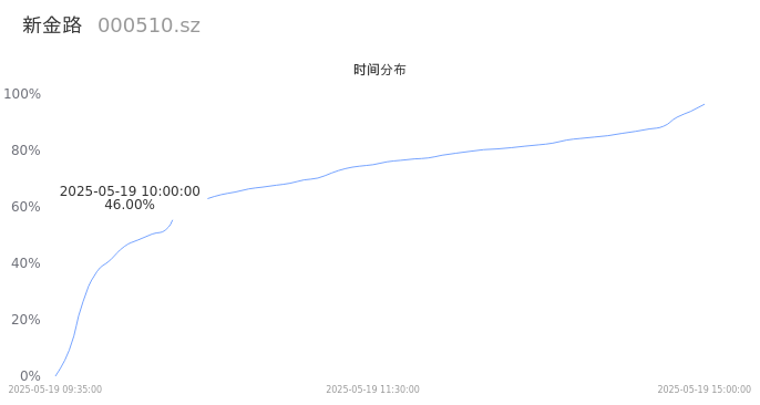 000510新金路2025年05月19日成交108.58万手,成交金额6.06亿,相较昨日放量8644手,换手率17.90%,成交活跃。