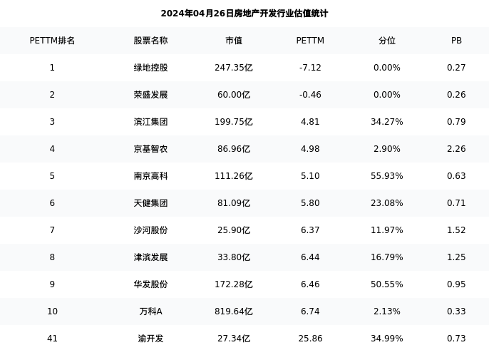 从估值角度看:渝开发最新市盈率PETTM为25.86,在行业内排名41/97,处于34.99分位。