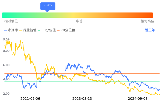 2024年09月03日,国际医学上涨0.95%收于4.25,今日成交金额4787.81万。下文将从市盈率PETTM、市净率PB、市现率3个角度去分析公司估值情况。