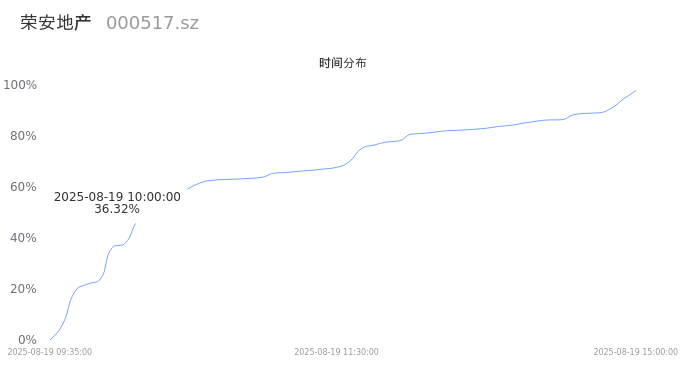 000517荣安地产2025年08月19日成交24.64万手,成交金额4846.95万,相较昨日缩量11.01万手,换手率0.99%,成交清淡。
