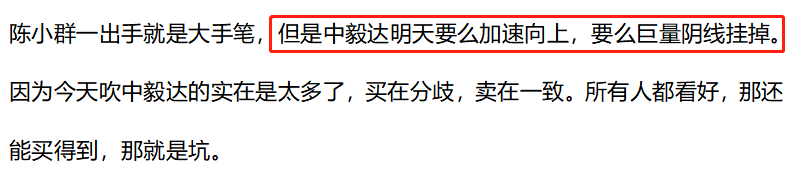 昨天文章说过,陈小群的一个亿是一个兴奋剂,要么加速要么挂掉。今天中毅达开盘10分钟都没涨停,就注定了跳水的命运。不光他跳水、红墙股份、利君股份、渝三峡都跌停了。