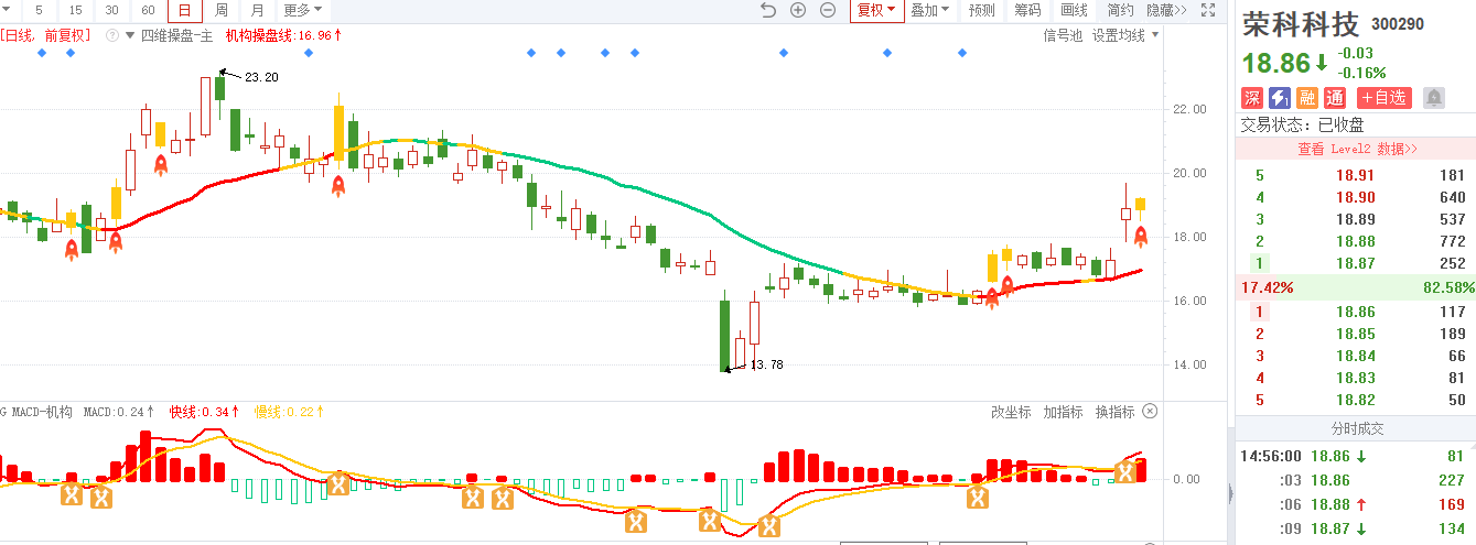 2)荣科科技-四维操盘-近期出现火箭信号且底部量柱由绿转红