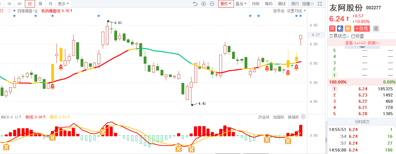 1)友阿股份-四维操盘-近期出现火箭信号且底部量柱由绿转红