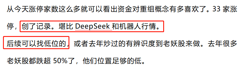 现在市场都在炒小票,有重组预期的小票一旦涨起来就是连板,所以这叫干柴遇烈火,后续重组行情持续看好。大家也可以观察慧博云通的强度,能否超过去年的光智科技8个20厘米涨停,两个星期涨了360%。相当夸张。慧博云通是本轮行情的风向标。如果他连翻倍都没有,那后面的行情真没啥意思。做做低位补涨就得了。
