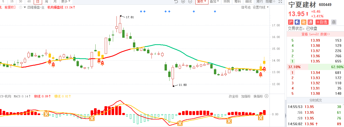 3)宁夏建材-四维操盘-近期出现火箭信号且底部量柱由绿转红
