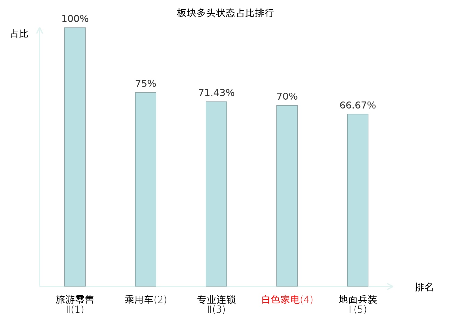 全市场所有行业板块中主力多头状态占比排名中,旅游零售Ⅱ板块位居第一。焦炭Ⅱ板块名次提升最快,较昨日上升105位。
