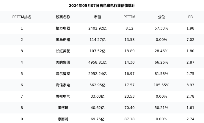从估值角度看:长虹美菱最新市盈率PETTM为13.89,在行业内排名3/9,处于28.46分位。