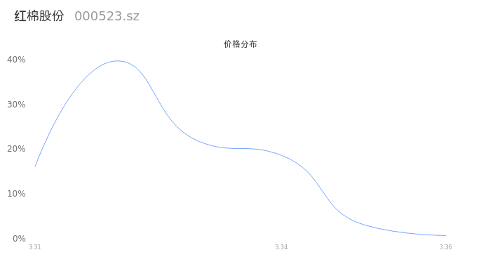 然后我们来看下当日成交的价格分布。经过分析发现,该股票当日成交价格波动低于10个最小波动价位,由于可以参考的样本量非常少,价格分布分析的结果不具有指导意义,下图仅供参考。