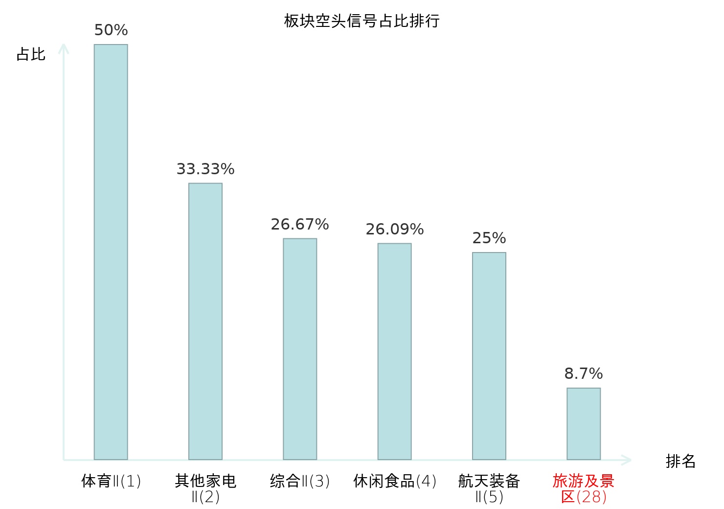 全市场所有行业板块中主力空头信号占比排名中,体育Ⅱ板块位居第一。综合Ⅱ板块名次提升最快,较昨日上升113位。