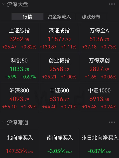 9月9日A股震荡走高,三大指数均涨1%左右,上证50指数涨近2%。截至收盘,沪指涨0.82%,深成指涨1.11%,创业板指涨1%。北向资金净买入147.53亿元,两市合计成交7796亿元,继续缩量。