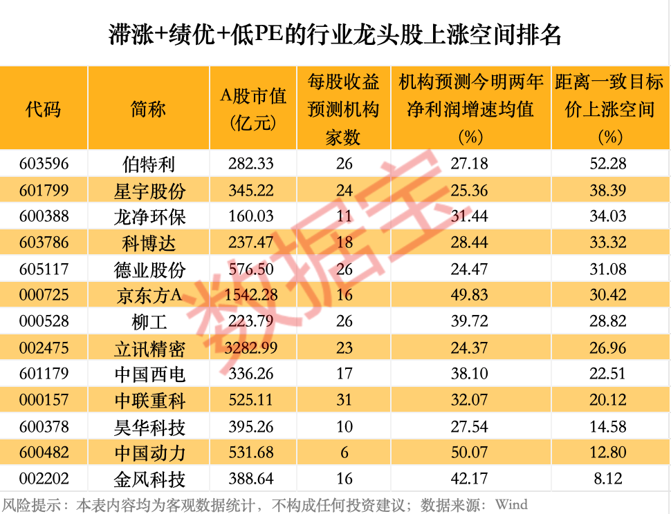 下个新高龙头股在哪里?滞涨+绩优+低PE行业龙头股揭晓!13股上榜
