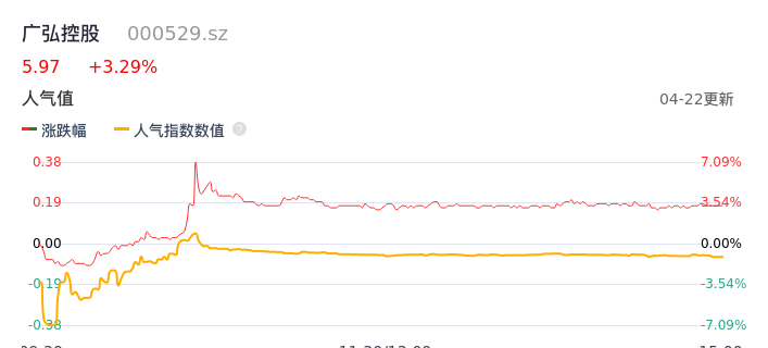 04月22日,广弘控股收报5.97,股价涨幅3.29%,成交金额6852.66万元,换手率2.02%。