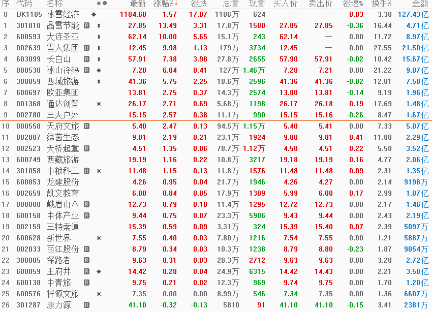 事件驱动:冰雪经济概念逆势活跃,雪人集团直线涨停,大连圣亚一度涨超9%,续创历史新高,晶雪节能、雪人集团、长白山、西域旅游、冰山冷热等跟涨。消息面上,途牛截至10月底最新预订数据显示,北京、上海、南京、成都、广州、武汉、杭州、深圳、贵阳、重庆等地用户冰雪旅游意愿启动得更早。在截至目前预订冰雪旅游相关产品的用户中,南方游客占比超过60%,“北上追雪”成为更多南方游客冬季出游的优选。