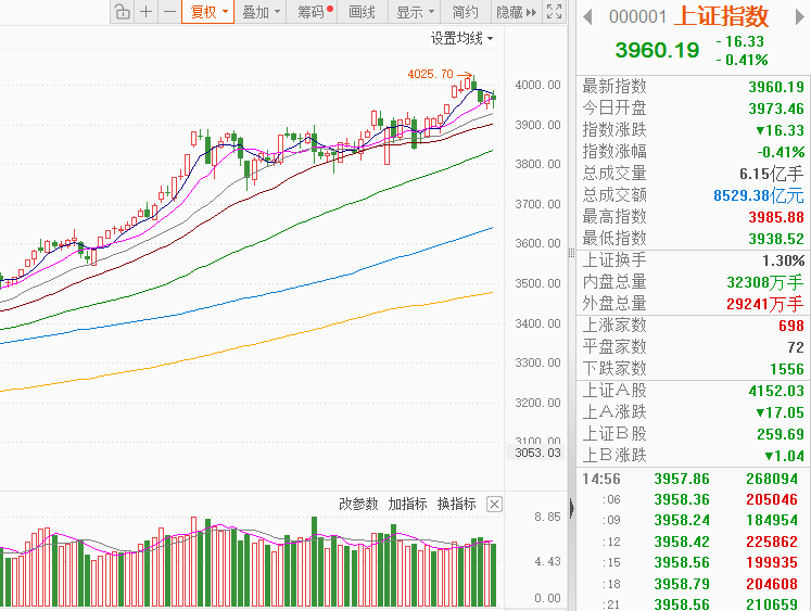 大盘分析及后市展望:今日A股市场震荡回落,午后跳水下,全天整体走低。具体看,三大指数早盘低开后一度翻红,沪指短暂站上3985点关口,但上行乏力后逐步回落。午后受亚太市场集体走弱影响,外围市场的疲软直接引发A股尾盘跳水。其次,技术性获利回吐压力显现,自3700点升至4000点的过程中积累的获利盘开始集中了结,AI算力、半导体等涨幅较大的板块面临较大抛压。板块表现明显分化,银行股逆势走强,而机器人、新能源等板块跌幅居前,反映出资金正向防御属性板块聚集。