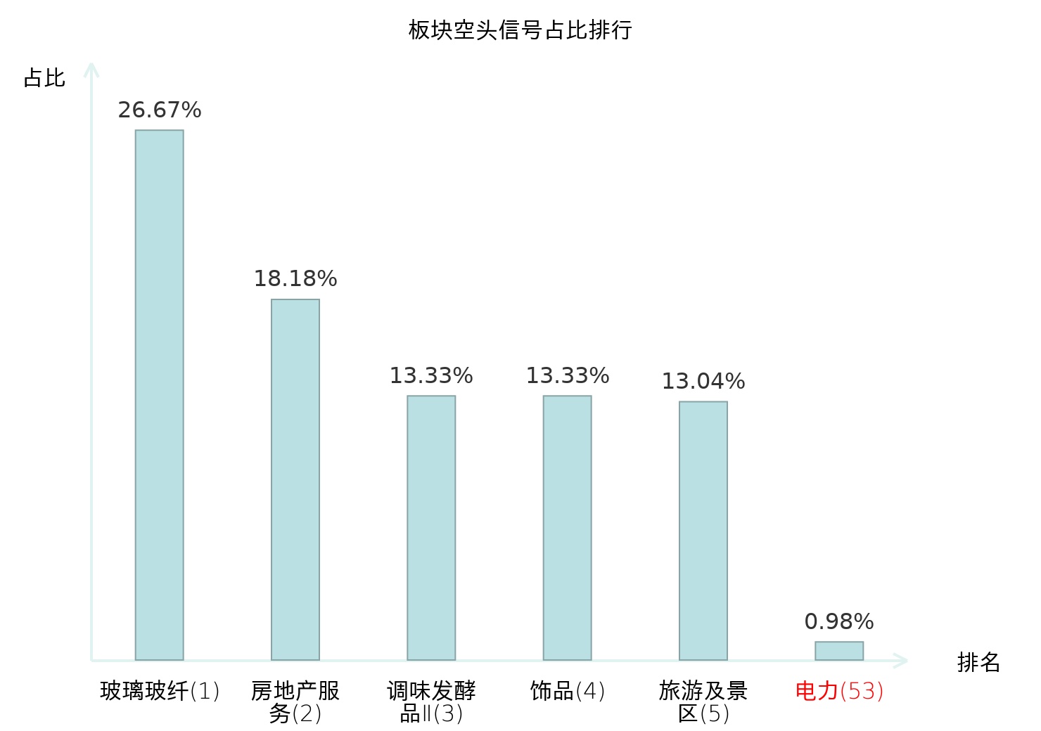 全市场所有行业板块中主力空头信号占比排名中,玻璃玻纤板块位居第一。元件板块名次提升最快,较昨日上升116位。