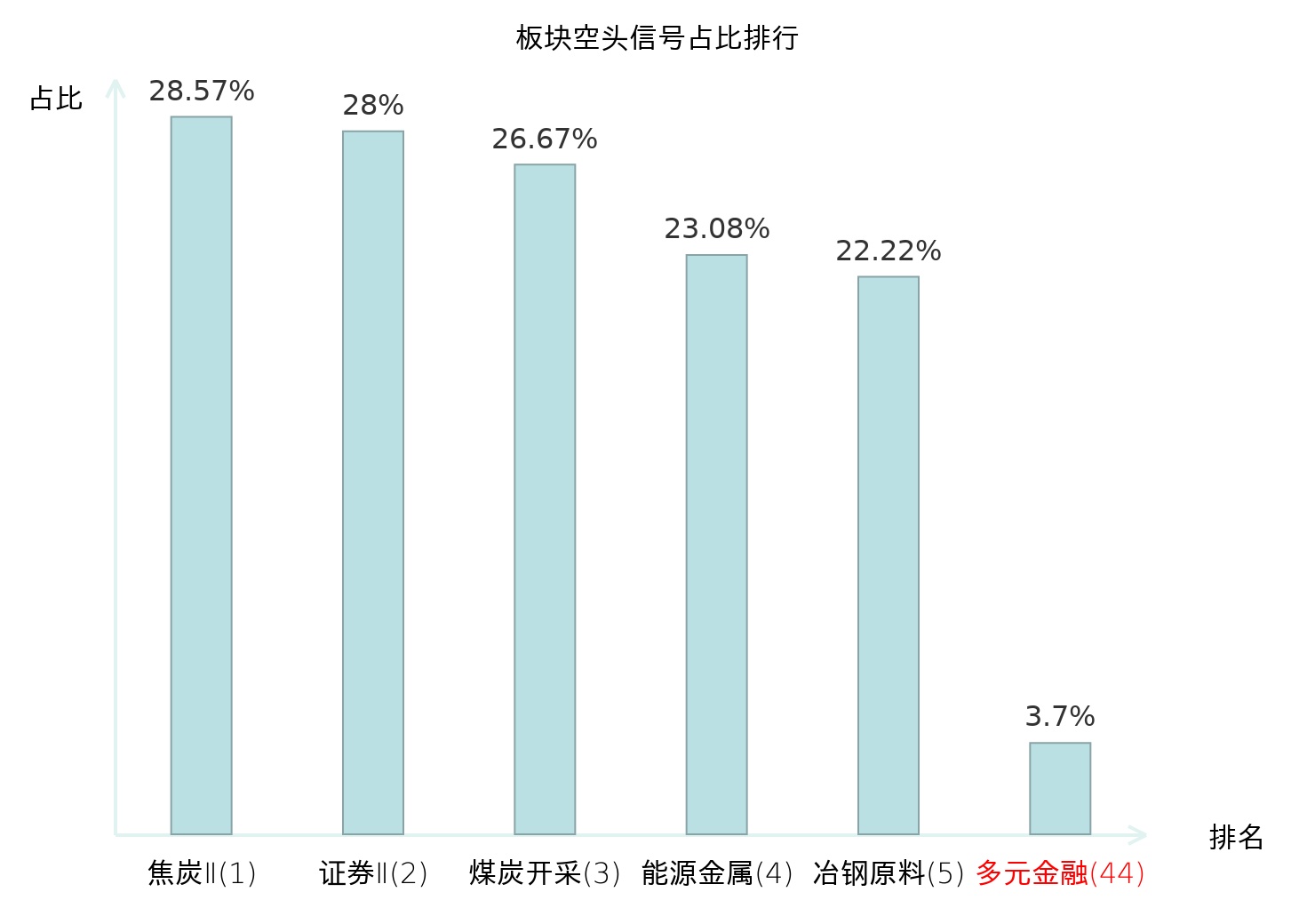 从主力宝信号数据分析,华金资本所属的多元金融板块中共1只股票发出主力空头信号,主力空头信号占比在全行业中排名第44位,较昨日上升86位。排名上升表明主力对该板块的卖出意愿增强,可能预示着短期内该板块存在调整压力,为投资者提供了重要的市场情绪参考。全市场所有行业板块中,焦炭Ⅱ板块的主力空头信号占比最高,位居第一。煤炭开采板块名次提升最快,较昨日上升128位。这些变动揭示了主力资金在不同行业间的偏好调整,有助于投资者更好地理解当前市场的动态和趋势。