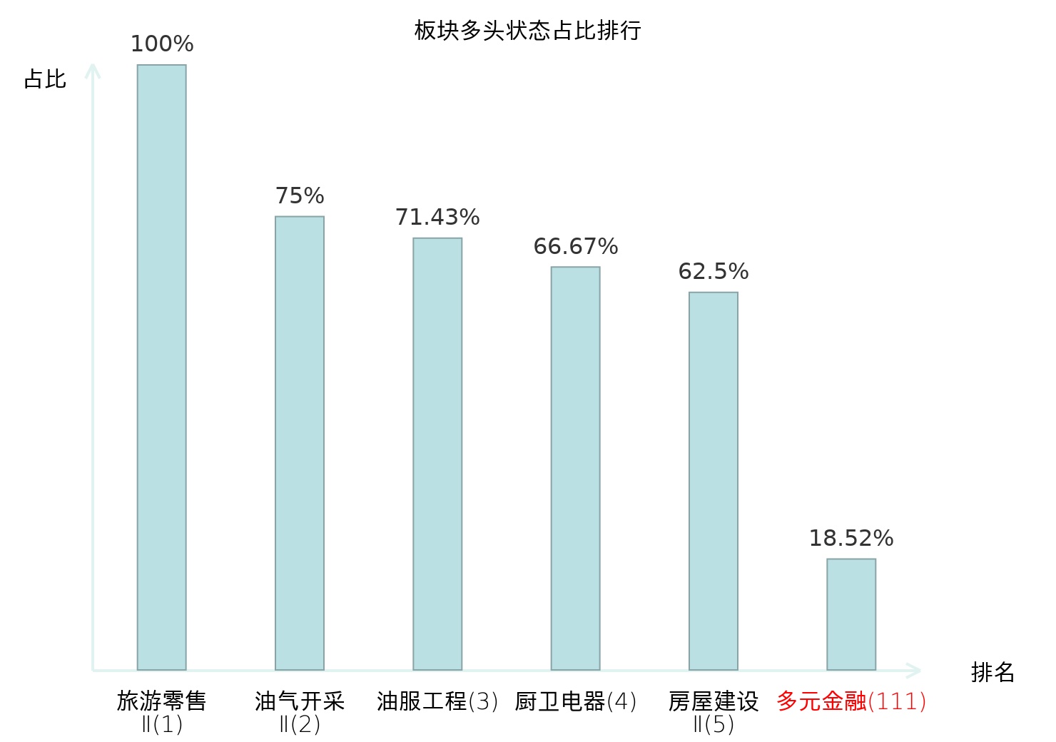 全市场所有行业板块中主力多头状态占比排名中,旅游零售Ⅱ板块位居第一。焦炭Ⅱ板块名次提升最快,较昨日上升58位。