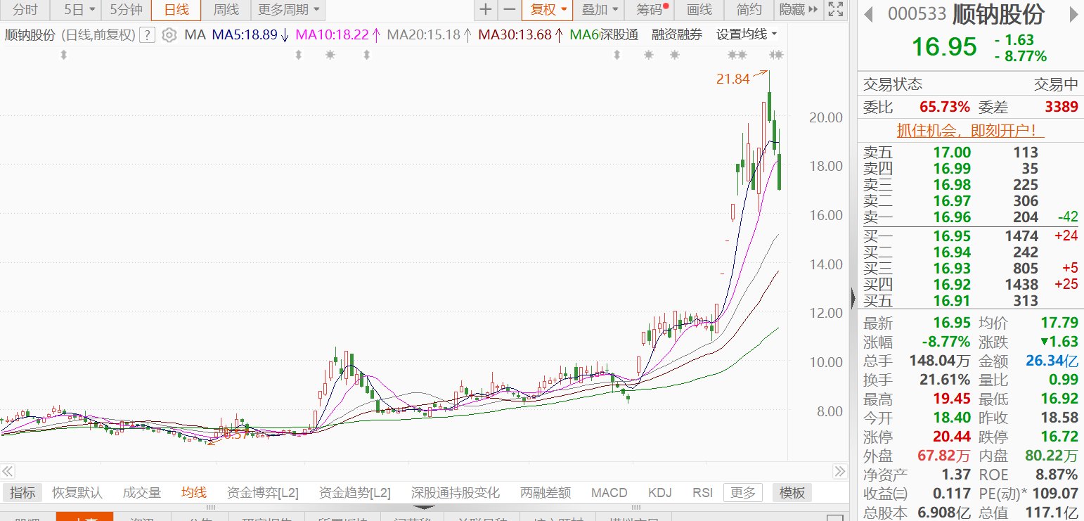 顺钠股份 --%