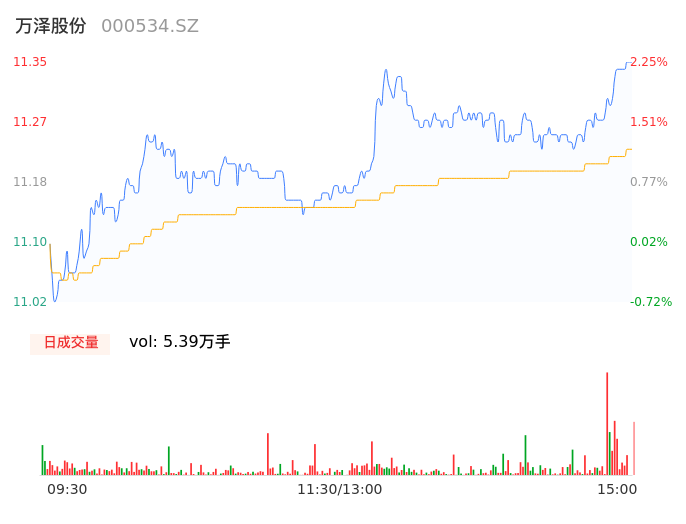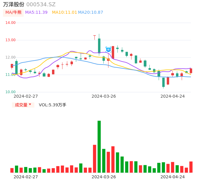 04月24日,万泽股份收报11.35,股价涨幅2.25%,成交金额6052.11万元,换手率1.08%。