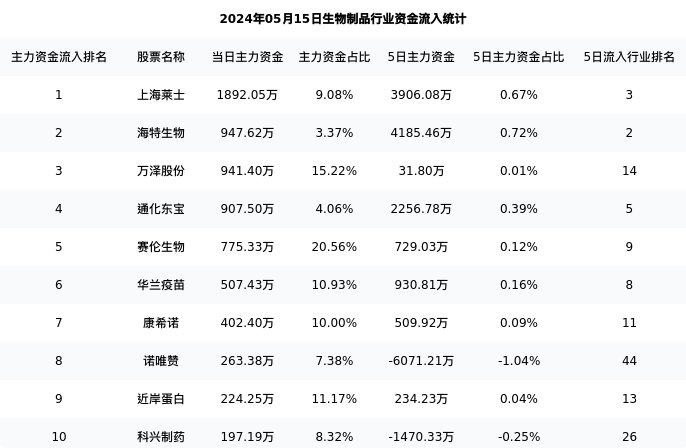从主力资金流向来看,生物制品行业今日主力资金流入14.04亿元,在所有申万二级行业中排名:35/131。