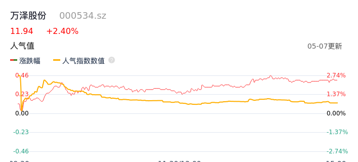 05月07日,万泽股份收报11.94,股价涨幅2.40%,成交金额5593.74万元,换手率0.95%。