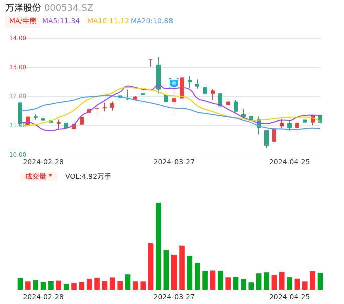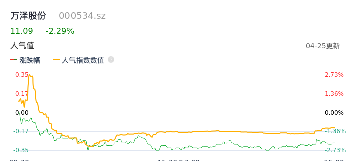 04月25日,万泽股份收报11.09,股价涨幅-2.29%,成交金额5470.27万元,换手率0.99%。