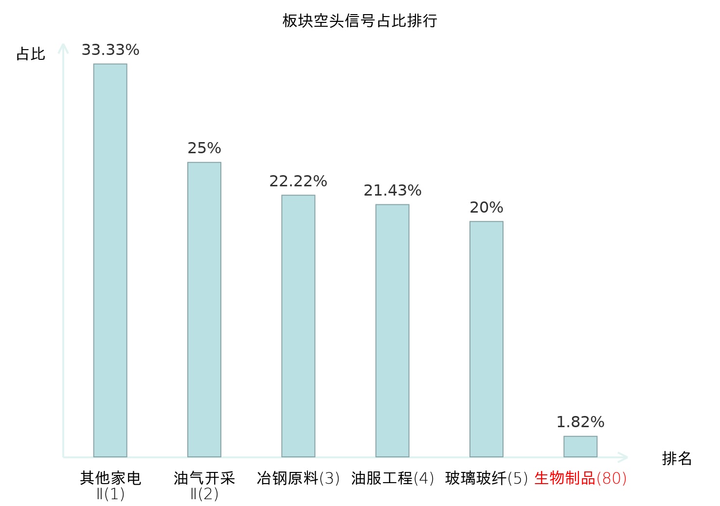 全市场所有行业板块中主力空头信号占比排名中,其他家电Ⅱ板块位居第一。铁路公路板块名次提升最快,较昨日上升113位。