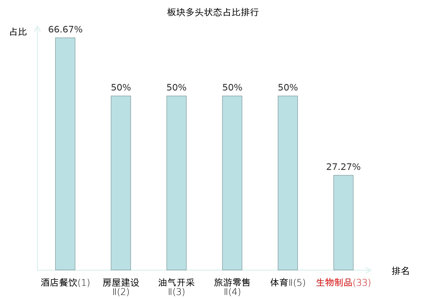 全市场所有行业板块中主力多头状态占比排名中,酒店餐饮板块位居第一。农商行Ⅱ板块名次提升最快,较昨日上升50位。