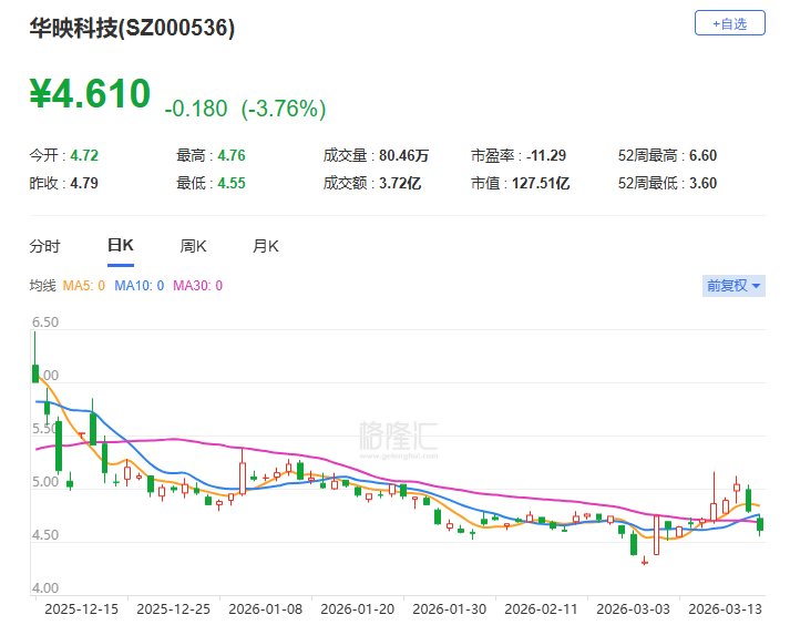 A股异动丨华映科技跌5% 华映百慕大拟被动减持0.64%股份
