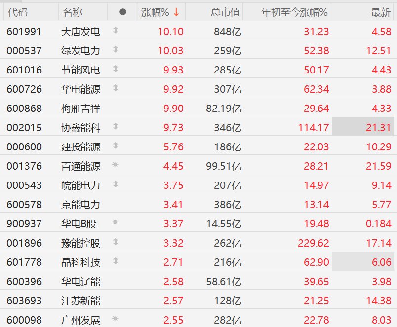 A股异动丨三重利好共振驱动,电力股持续强势,华电能源、绿发电力3连板