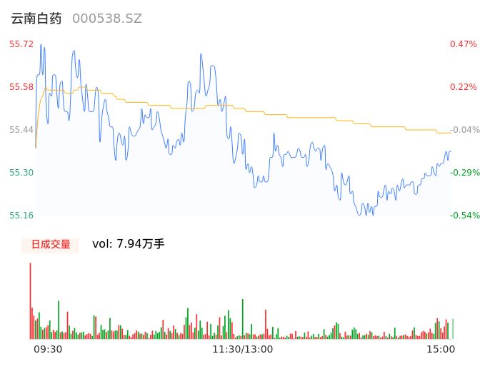 04月25日,云南白药收报55.33,股价涨幅-0.23%,成交金额4.40亿元,换手率0.45%。