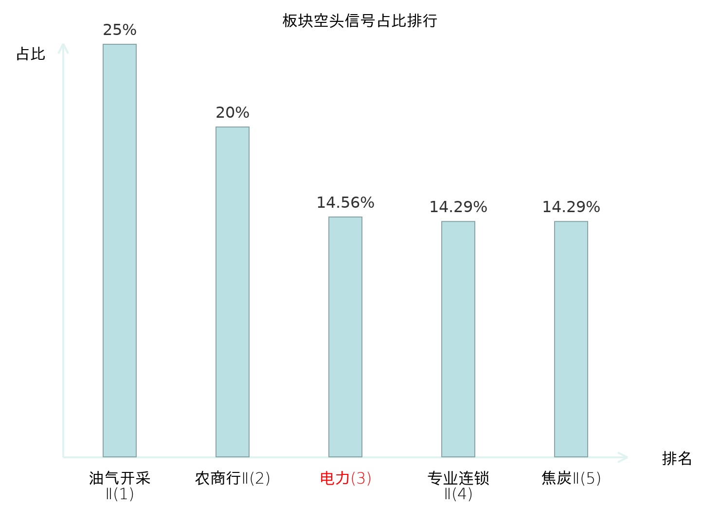 全市场所有行业板块中主力空头信号占比排名中,油气开采Ⅱ板块位居第一。工业金属板块名次提升最快,较昨日上升119位。