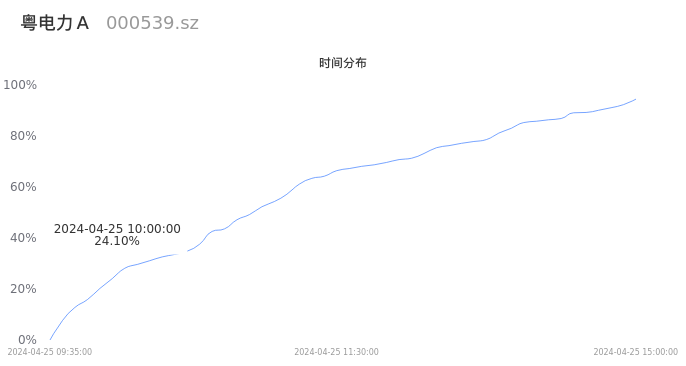 000539粤电力A2024年04月25日成交23.93万手,成交金额1.26亿元,相较昨日缩量11.44万手,换手率0.94%,成交清淡。